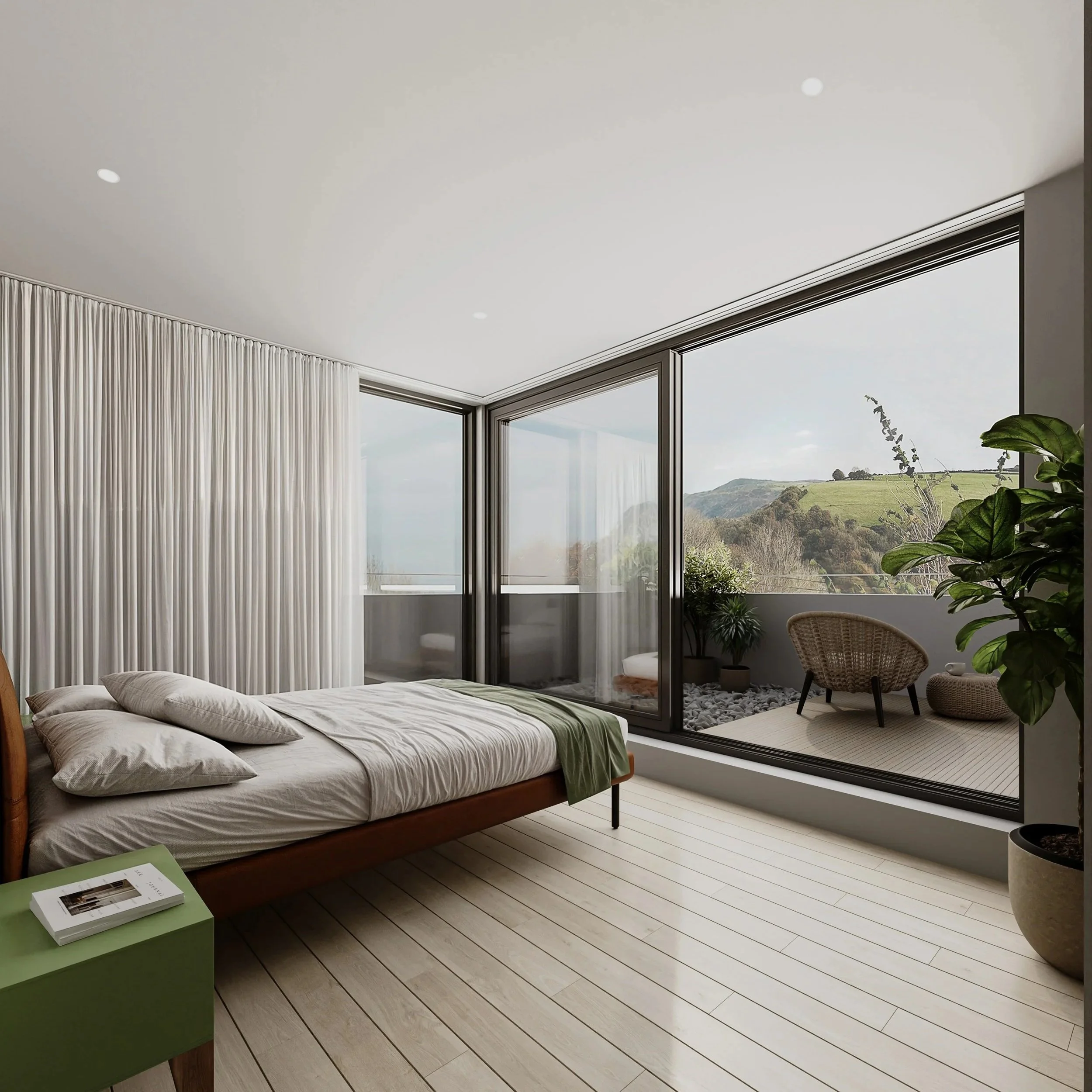 This includes a first-floor penthouse extension in Exmoor, where careful design was required to sit comfortably within a sensitive landscape setting, balancing contemporary design with planning considerations.